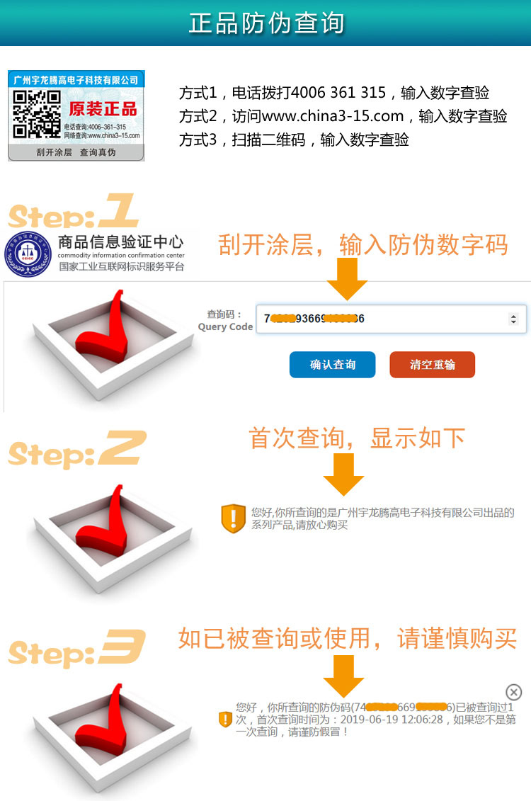 为保证您的权益,公司产品采用正品防伪码标签,产品一物一码,可通过下列方法查验产品真伪。