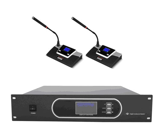 ◆面板具有LCD液晶显示,122x32点阵显示会议模式。面板上具有功能键、旋钮供系统设定及调节之用。